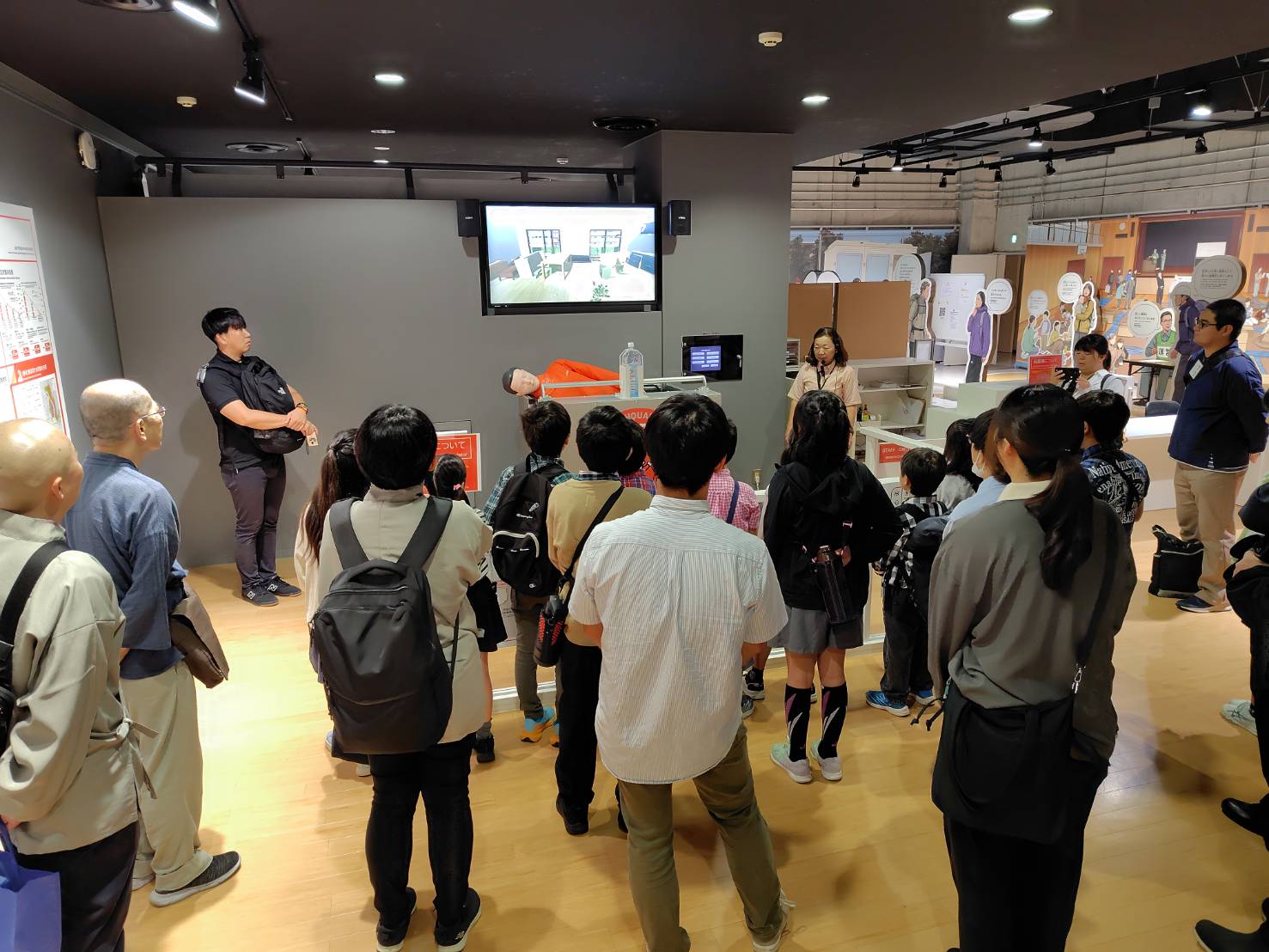 午前中は有明にある防災体験学習施設「そなエリア東京」で、地震災害後をどう生き抜くかを学びました。タブレットを使用しながら、施設職員さんのツアー形式の説明を聞き、子どもたちは夢中で災害後を生き抜くヒントや備えを学習しました。ジオラマ展示があまりにリアルで尻込みする児童もいるほど、正に災害を疑似体験しながら備えの大切さを知ることができました。