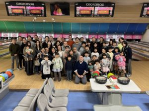 青年会会員やOB及びそのご家族など55名の参加者の皆さまがボウリングを楽しみ、その後、懇親会会場に席を移し親睦を深めました。
